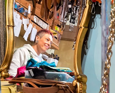 Lucrezia – Italian designer and founder of Cact_us Bags. In her studio in Colle di Val d’Elsa in the heart of Tuscany, she handcrafts every detail, blending traditional craftsmanship with modern aesthetics. Her creations radiate calm elegance and meticulous attention to detail. Lucrezia kindly agreed to pose for a short photo session, where her natural grace and artistic sensitivity were beautifully captured.
